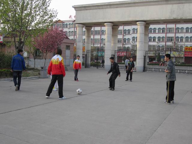 每天早上六点二十分,都能准时在校园主干道上看到他们熟悉的身影,在辅导员朱晓东的带领下出早操。先围着道路跑几圈做热身运动,然后集体做徒手操,最后,同学们根据各自的兴趣分散进行锻炼,有的踢毽子,打羽毛球,有的组队踢足球。在和煦的朝阳下,他们个个精神抖擞,充分利用美好时光。
