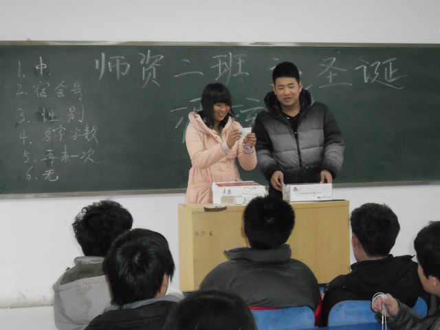 12月24号,在这个不平凡的夜晚,师资二班举行了“‘漂流瓶’愿望就要大声说出来”活动。整个师资二班同学都将自己的新年愿望署名写在字条上,再由班长抽选念出来让所有人猜猜看是哪位同学的愿望,整个活动在欢快火爆中进行,期间又有多位同学献唱将气氛推向了顶点,这次活动实现了同学之间相互了解,增进感情的目的。相信我们师资二班在以后的日子里会越来越棒,共创辉煌!