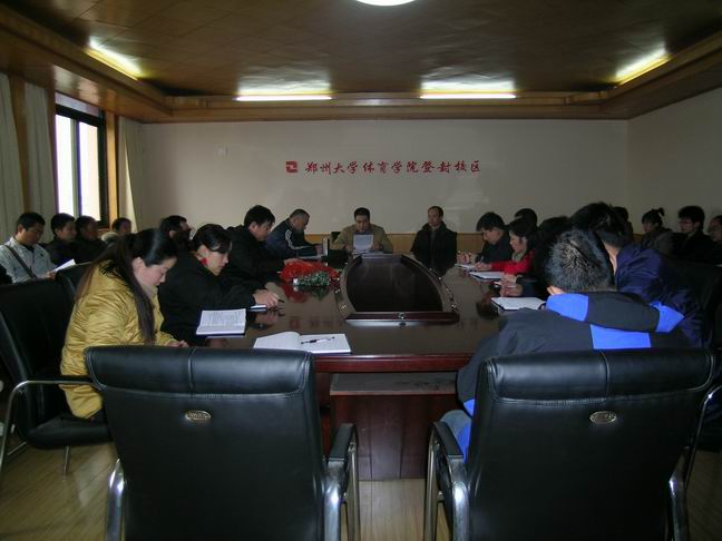 3月5日中午12:30,登封校区全体教职工在办公楼三楼会议室召开关于学习“郑大体院2010年工作要点”的主题会议。会上,校区领导带领大家共同学习了郑体院党【2010】14号文件中《郑州大学体育学院2010年工作要点》的全文内容,就其中八个方面的31个要点内容进行了细致分析。登封校区张原主任要求校区下属各部门负责同志根据《郑州大学体育学院2010年工作要点》和《登封校区2010年工作重点》,认真思考,结合实际,完善本部门2010年工作计划,要求校区全体教职工在新学期里按照既定工作计划,合理安排工作时间,增强工作的前瞻性、创新性,进一步提高工作效率和工作质量。