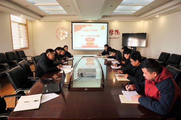 为贯彻落实“不忘初心、牢记使命”主题教育,深入学习贯彻习近平新时代中国特色社会主义思想和党的十九大四中全会精神,根据院党委要求,2019年12月2日下午16点整,登封校区党总支在第一会议室组织开展了十九大四中全会精神专题学习活动。本次专题学习活动由登封校区党总支书记张广明主持,校区全体教职工党员参加。