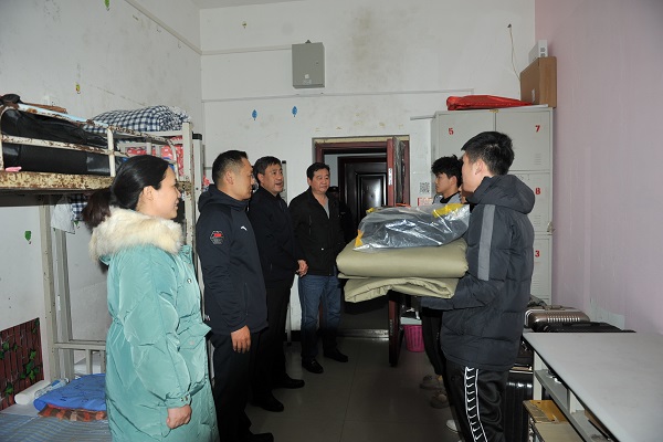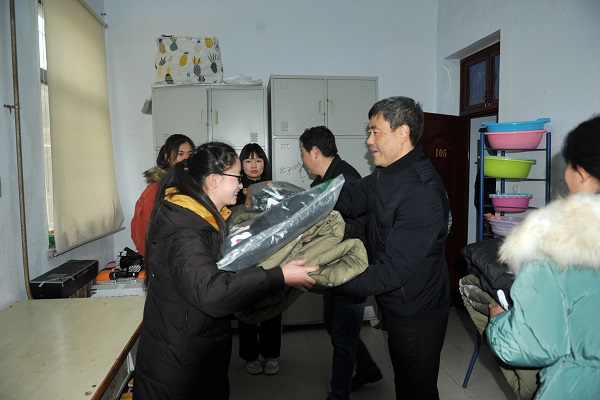 学院副院长张原一行在校区领导陪同下深入学生宿舍慰问困难生。学院领导亲切的与困难生进行交谈,仔细询问了同学们的生活学习情况,为困难生发放棉衣棉被,向困难生表达了学院对困难生的关心和慰问,勉励同学们要正确看待暂时的困难,珍惜学习的机会,自立自强,努力学好专业知识,早日成为对社会、国家有用之才,用自己的实际行动改变自己和家庭的现状,同时嘱咐同学们在生活上、学习上遇见困难一定要及时向学院反映,学院会尽力帮助家庭经济条件困难的同学完成学业。张原副院长一行还看望慰问校区辅导员老师,对辅导员老师自开学以来的工作开展表示肯定,勉励大家要严格贯彻落实学院疫情防控管理制度,克服各项困难,继续坚守防疫一线,确保校区学生健康安全。