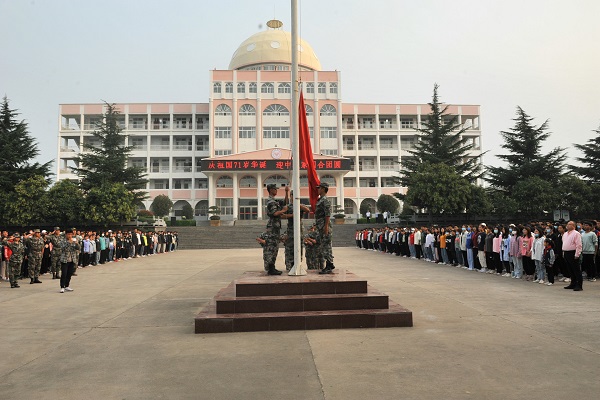 为庆祝中华人民共和国成立71周年,大力唱响“礼赞新中国华诞,弘扬传统文化精神”的主旋律,10月1日清晨,我院登封校区党总支举行升旗仪式暨“庆祖国71岁华诞、迎中秋家国合团圆——国旗下演讲”爱国教育系列活动。我院院党委书记张绍通,登封校区负责同志,校区全体师生1400余人参加了此次活动。