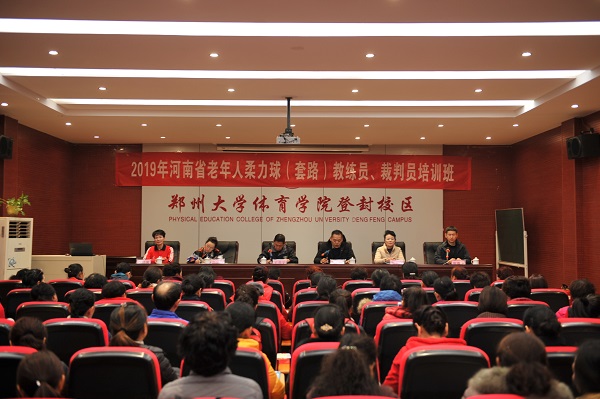 12月10日上午8点30分,2019年河南省老年人柔力球(套路)培训班开班仪式在登封校区举行。中国老年人体育协会柔力球专项委员会副主任、河南省老年人体育协会副主席王书义,我院登封校区党总支书记张广明,中国老年人体育协会柔力球专项委员会技术委员、柔力球国家级裁判员、教练员沈尤格,中国老年人体育协会全国柔力球第十二套规定套路创编者、柔力球国家级裁判员刘小滨,中国老年人体育协会柔力球专项委员会技术委员、柔力球国家级裁判员、教练员、柔力球双拍双球规定套路和健身套路创编者李翠芳出席开班仪式,河南省老年人体育协会副秘书长张海涛主持开班仪式。