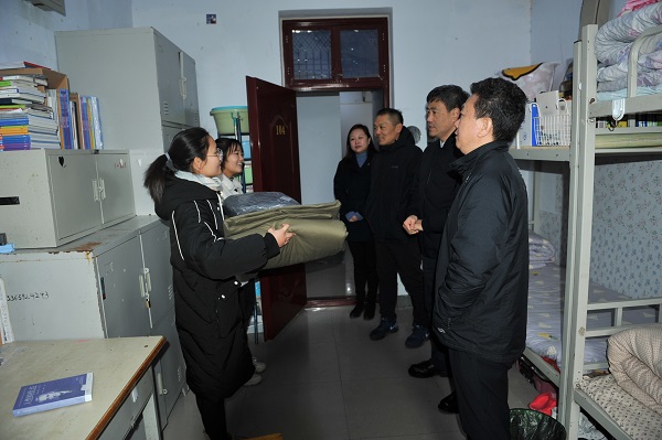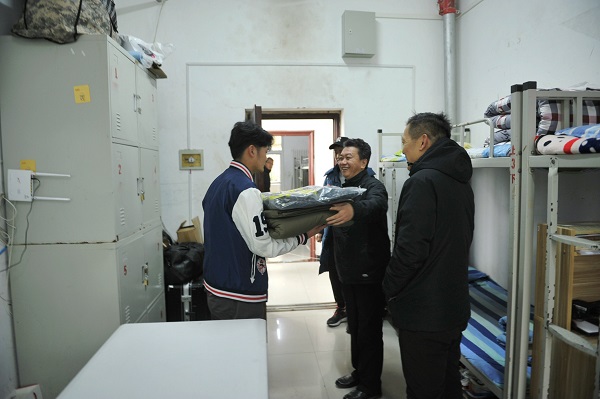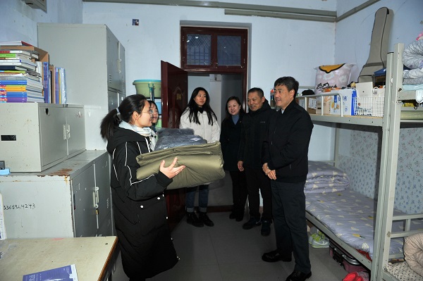 刘副书记、张副院长一行在校区领导陪同下深入学生宿舍为困难学生发放棉衣棉被。学院领导亲切与学生交谈,仔细询问了同学们的生活、学习情况,并鼓励同学们要敢于克服困难、勇于面对挑战、自强不息、刻苦学习,不断用知识充实自己,早日成为国家栋梁之才。同时刘副书记还表示,如果生活上遇见困难可以及时向学院反映,学院会尽力帮助家庭经济条件困难的同学完成学业。
