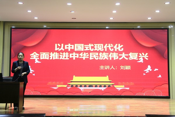 刘颖老师首先讲解了为何中华民族伟大复兴进入不可逆转的历史进程,随后她从中国特色社会主义是实现中华民族伟大复兴的必由之路导入,旁征博引、深入浅出地对中国特色社会主义的探索、界定和四个自信展开论述,最后围绕以中国式现代化推进中华民族伟大复兴向青年学生阐释建设社会主义现代化国家的时间规划和中国式现代化的五个特征。