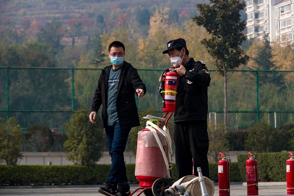 根据学院11月“消防安全月”活动相关要求,登封校区于11月9日中午12点30分在升旗广场举办了2022年消防安全知识讲座及演练活动。校区党总支副书记朱晓东,各科室负责同志和辅导员老师,全体大一新生参加活动,校区保安队队长李晓为全校区师生做了校园消防知识讲解和逃生实操演练要领指导。