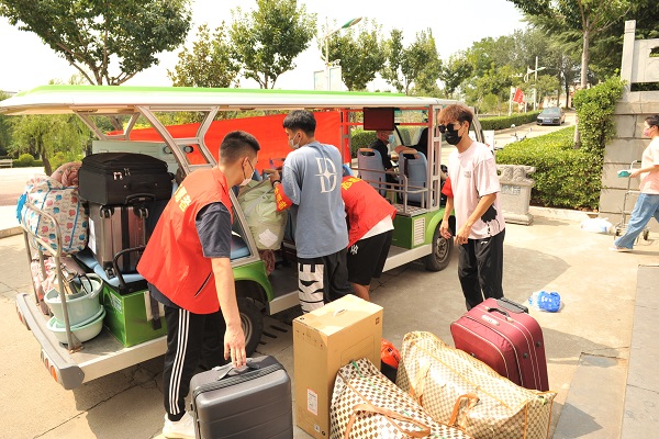 根据疫情防控要求,家长及车辆均不能进入校园。为方便学生报到,我院组织90余名志愿者帮助新生转运行李,行李转运车辆帮助学生将大件行李运至校内宿舍楼,一站式送新生到“新家”。暖心、热情、周到的服务,使新生入学伊始就能感受到学院大家庭的温暖。