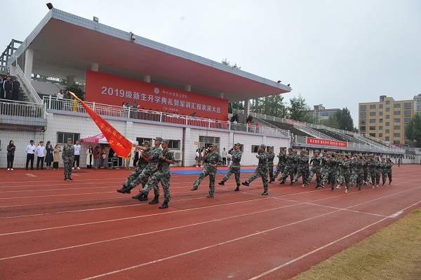 大会完成各项议程后,2019级新生开学典礼暨军训汇报表演大会圆满闭幕!