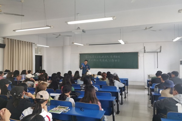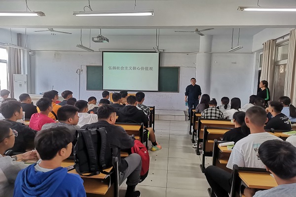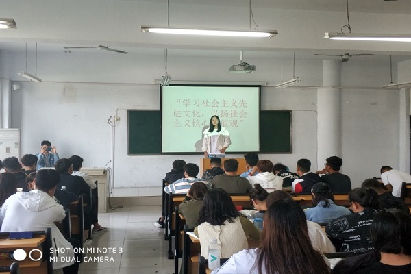 为了响应我院号召,学习十九大精神和习近平新时代中国特色社会主义思想,弘扬先进社会主义文化,认真落实社会主义核心价值观进校园,培养新时代有理想、有追求、有担当、有作为、有品质、有修养的大学生, 2019年4月9日,登封校区党总支组织校区全体学生开展“学习社会主义先进文化,弘扬社会主义核心价值观”主题教育班会。