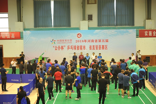 由河南省体育局、中共河南省委省直工作委员会、河南省老年人体育协会共同主办,河南省乒乓球网球运动管理中心、河南省乒乓球协会、河南省老年人体育协会乒乓球委员会承办,郑州大学体育学院协办的2018年河南省第五届“公仆杯”省辖市、省直管县(市)赛区乒乓球比赛在我院登封校区隆重举行,比赛自5月26日起至27日止,共有来自全省20余个省辖市、省直管县代表队参赛,参赛总人数达200余人。