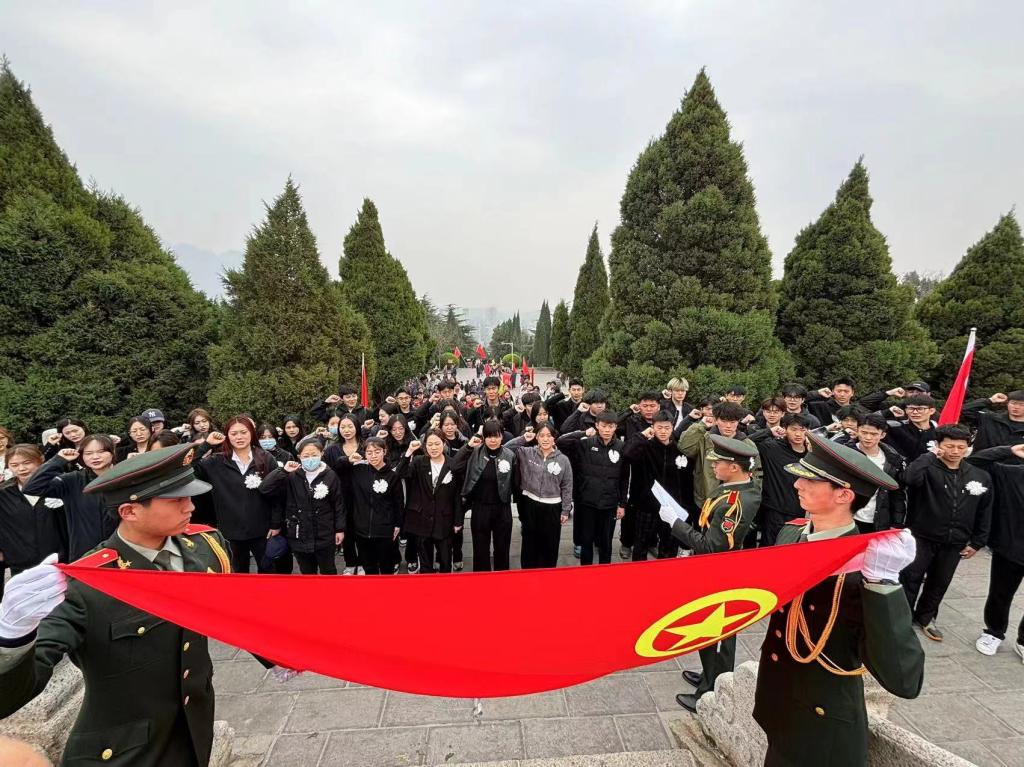 活动伊始,全体师生列队在烈士纪念碑前肃立,齐唱中华人民共和国国歌,并默哀,向丰碑三鞠躬,教师、学生代表向烈士敬献花篮。随后,校区教师支部书记刘志强带领校区全体党员在鲜艳的党旗下,重温入党誓词,庄严宣誓;学生代表张文斌带领全体团员重温入团誓词,表达对烈士的崇高敬意。最后,同学们来到革命烈士纪念馆,聆听革命先烈的英雄事迹,驻足瞻仰烈士们留下的文献资料照片与遗物,深切缅怀革命烈士们的丰功伟绩,学习英烈不畏艰险、勇于牺牲的革命精神。
