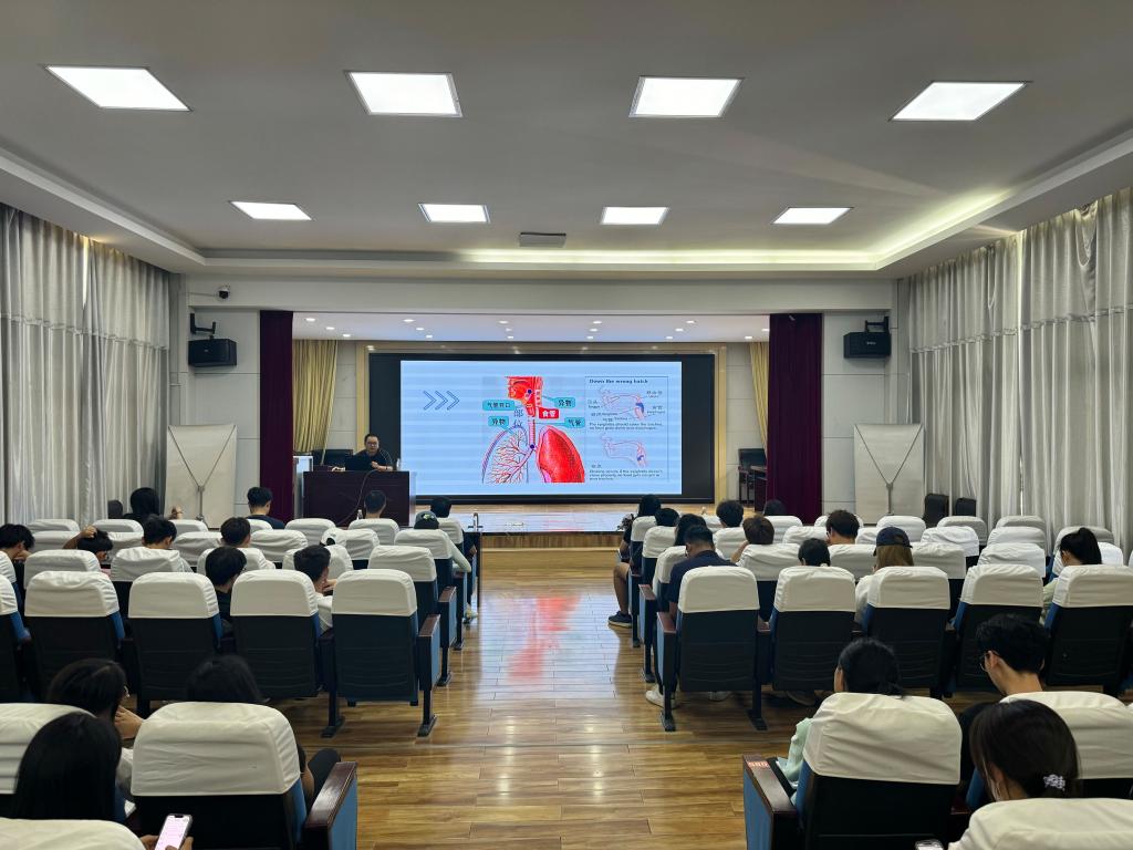 讲座伊始,张医生向大家介绍了急救知识的重要性,并强调了掌握基本急救技能对于每一个大学生的必要性。接着,他向同学们由浅入深地讲解了海姆立克急救法、心肺复苏法、溺水后急救法、外伤出血时的止血包扎法以及骨折固定法五种急救知识的基本原理和操作技能,教会同学们当自身或者身边人面临危险时,应当在现场做出正确的判断,并且展开有效的急救。最后,张医生热情邀请同学们上台进行心肺复苏模拟操作,让同学们在亲身体验中加深对急救知识的理解,并且鼓励大家在日常生活中多关注急救知识,提高自己的应急处理能力。