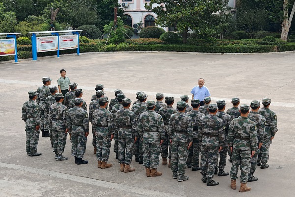 在校区升旗广场,教官们列队欢迎张书记的到来,张书记对教官们的辛勤付出表示了诚挚的感谢。在慰问过程中,书记与军训教官们亲切交谈,详细询问了他们的生活和训练情况,叮嘱他们要注意身体健康,同时希望他们能够继续秉持严谨的军事作风和高度的责任感,为学生们上好军训这堂意义深远的“必修课”。