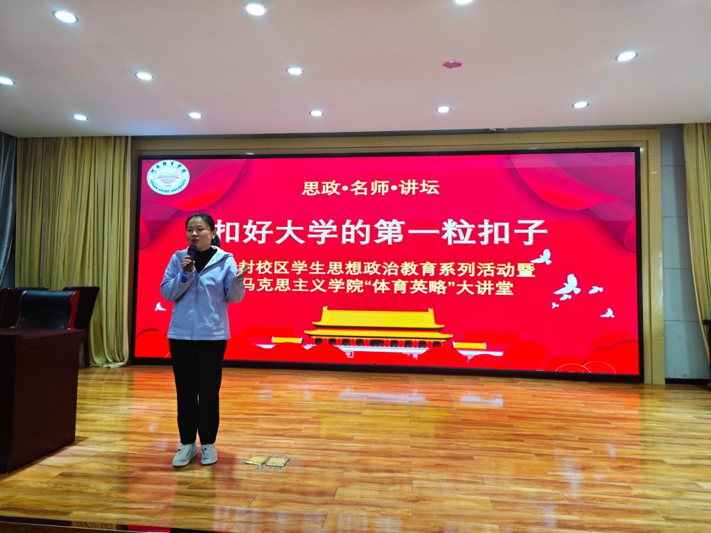 为进一步深化学生思想政治教育,深入学习贯彻习近平总书记接见第33届奥运会中国体育代表团时的重要讲话精神,2024年11月1日,登封校区举行了题为“为建设体育强国贡献青春力量”的“思政·名师·讲坛”第九讲活动。本次讲座邀请了马克思主义学院院长刘颖老师为主讲人。校区近200余人参加了本次活动。