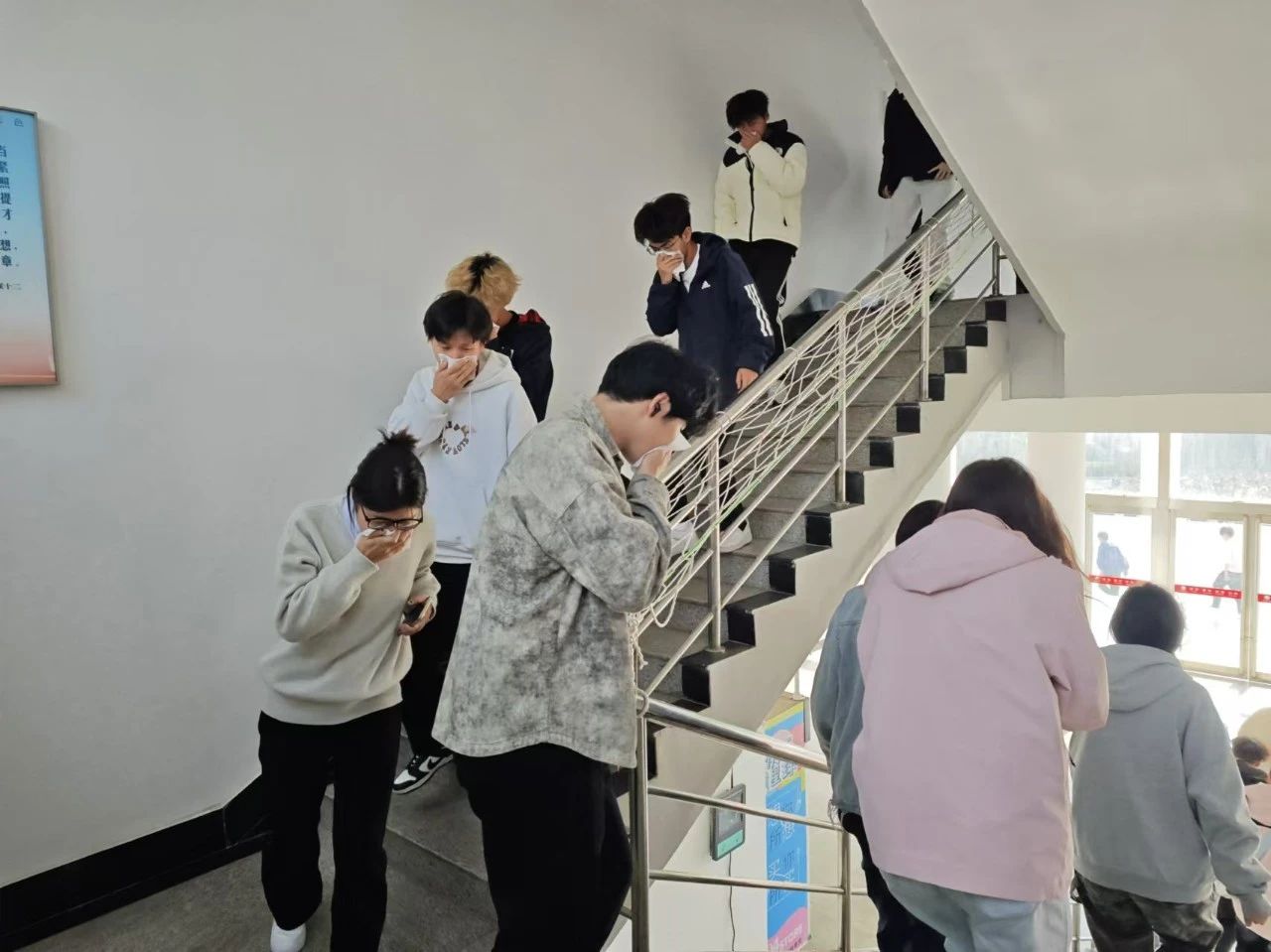随着一阵急促的警报声响起,演练正式开始。同学们在老师的组织下,用湿毛巾捂住口鼻,弯腰低姿,手扶楼梯栏杆,按照预设的疏散路线快速有序地撤离到安全地带。整个疏散过程紧张而有序,充分展现了师生们良好的应急反应能力和纪律性。