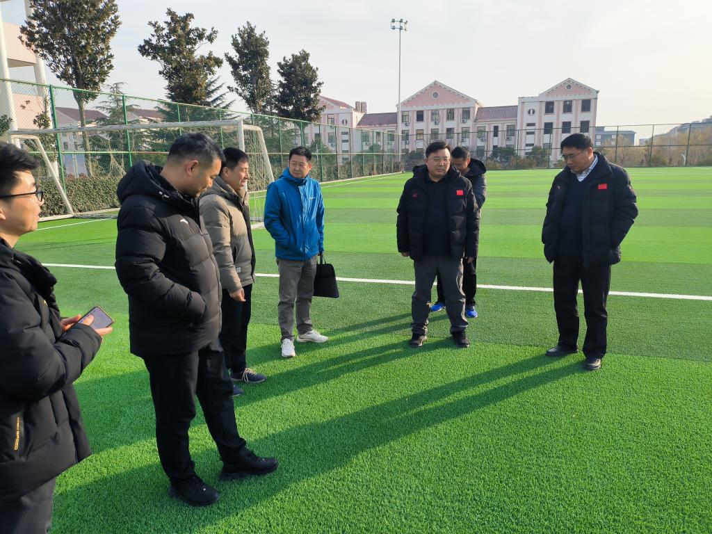 院领导一行人在校区负责人的陪同下来到足球场,勘察验收足球场的翻新工作。随后,院领导查看了冬季训练馆和学生餐厅的运行情况,并叮嘱要加强安全教育和检查,做好学生的各项服务保障。