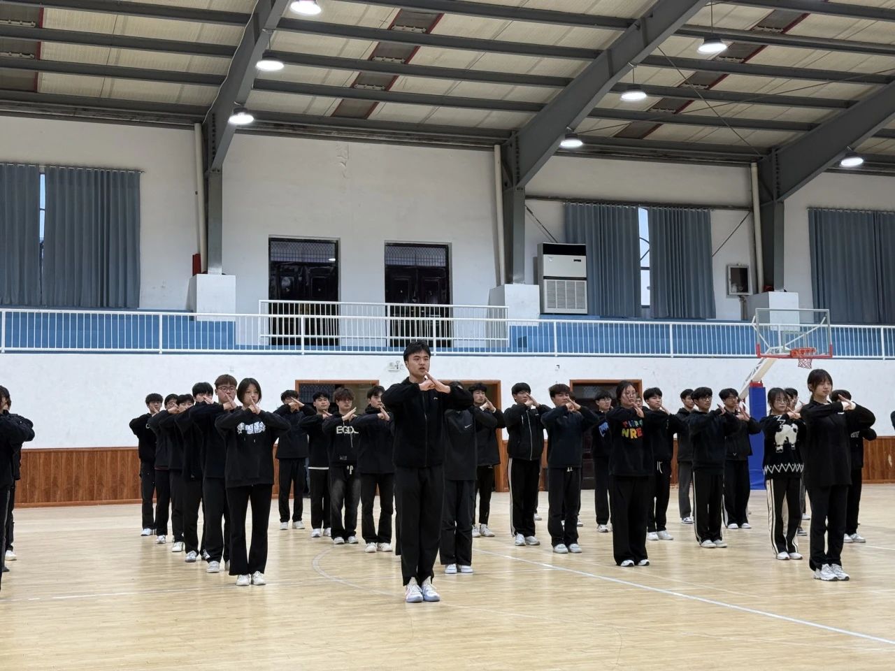 比赛现场,同学们伴随着舒缓而悠扬的八段锦音乐,依次进行双臂上托、左右开弓、松腰转脊等动作。每一个动作都舒展流畅、刚柔并济,每一个节拍都整齐有序。他们的脸上洋溢着平和的笑容,眼神中透露出专注与宁静,充分展现了当代体育学院学生的沉稳大气以及团结协作的精神风貌。