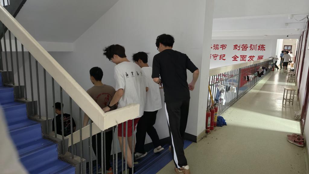 随着急促的警报声在宿舍楼响起,演练正式拉开帷幕。楼内消防安全员、辅导员、物业管理人员迅速反应,按照既定应急预案,立即组织楼内学生进行紧急疏散。