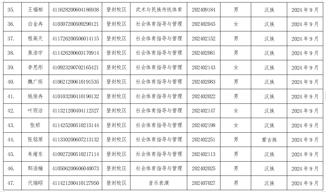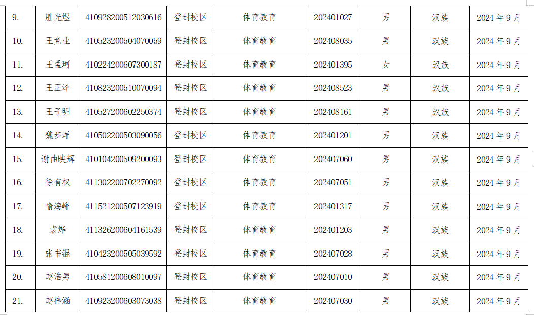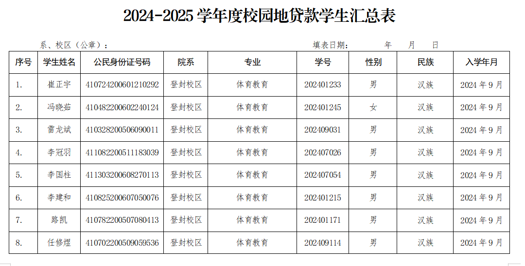根据《河南体育学院关于做好2024年度国家助学贷款工作的通知》文件要求,登封校区对河南省2024年度高校助学贷款申请材料予以审查,现将2024-2025学年度高校助学贷款申请名单予以公示: