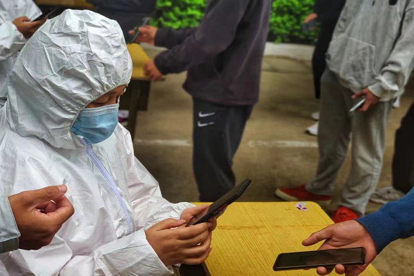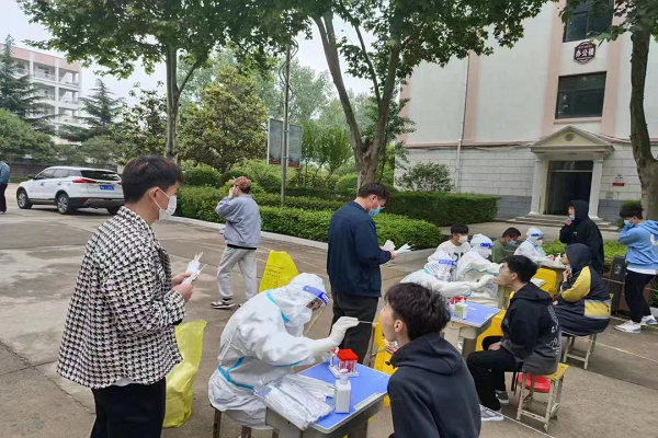 校区党总支书记郜攀峰老师、党总支副书记朱晓东老师亲自为同学们进行扫码登记,此外,其他行政人员、辅导员老师等也主动参与到扫码登记、义务执勤中来,确保同学们在核酸检测期间保持1米间距,保证学生安全,缓解同学们对疫情的紧张情绪。