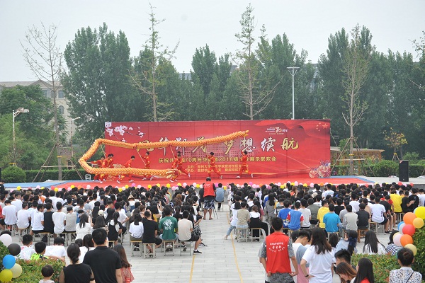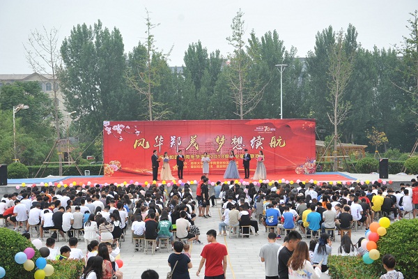 6月27日下午18时30分,登封校区全体师生相聚在圆形广场,共同参加了庆祝新中国成立70周年华诞暨2018级学业展示联欢会。登封校区党总支副书记郜攀峰代表校区上台致辞,深情回顾了登封校区18级学生入校以来的工作历程,向同学们提出了几点诚挚的人生建议并送上美好的祝福。