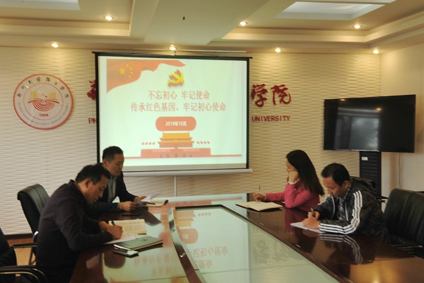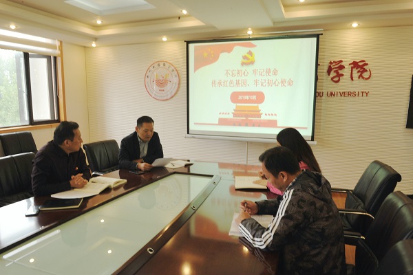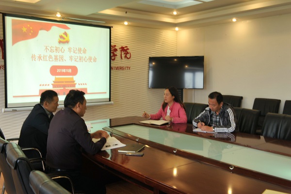 2019年10月11日下午15点,登封校区党支部在第一会议室召开“传承红色基因、牢记初心使命”学习研讨会,会议主要由张广明书记主持召开,校区全体党员干部参加会议。