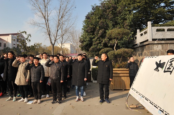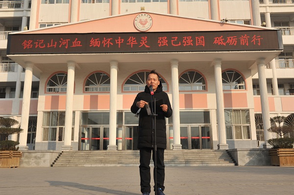 上午9点40分,校区国旗班迈着坚定的步伐一步步走向旗台,伴随着庄严的国歌进行降半旗仪式。在国旗下,参加纪念活动的师生为南京大屠杀的遇难者默哀,缅怀惨遭日寇杀戮的死难同胞。忘记历史就意味着背叛,登封校区党总支书记与现场师生一起回顾了南京大屠杀的惨痛历史,并发出倡议:全体师生在以习近平总书记为核心的党中央领导下,在习近平中国特色社会主义思想指引下,自强不息,奋发图强,砥砺前行,为我们伟大的祖国繁荣昌盛而努力奋进!