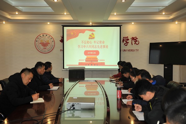 为深入学习贯彻习近平总书记视察河南重要讲话和党的十九届四中全会精神,根据院党委要求,2019年12月25日上午9点,登封校区教师支部在第一会议室组织党员开展向申六兴同志学习和观看系列红色微视频《追寻》活动。本次学习活动由校区教师支部书记刘志强主持,校区全体教职工党员参加。