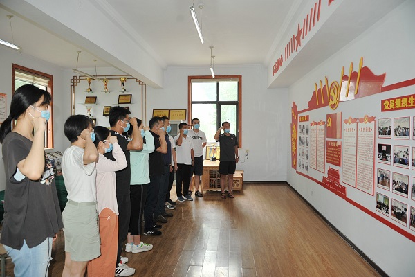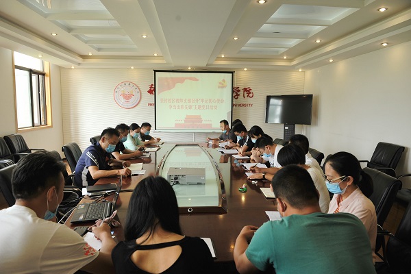 活动伊始,校区教师支部书记刘志强传达了院党委下发的《关于在“七一”期间组织开展以“牢记初心使命、争当出彩先锋”为主题的支部党日活动的通知》文件精神,带领校区党员学习先进典型事迹,观看纪录片《中国战疫录》。观影结束后,由校区教师支书记刘志强带领全体党员面对鲜红的党旗,重温入党誓词,铭记党的奋斗历史,回顾入党时的崇高理想和奋斗目标,不忘初心,牢记使命。