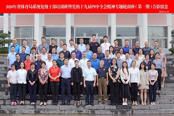 8月19日上午,2020年省体育局系统处级干部培训班暨党的十九届四中全会精神专题培训班(第一期)在我院登封校区开班,省体育局系统57名处级干部参加了本次培训,我院党委书记张绍通将在本次培训活动中进行授课。省体育局副局长黄家明、学院副院长董庆、局人事处处长张利丽出席了开班仪式。