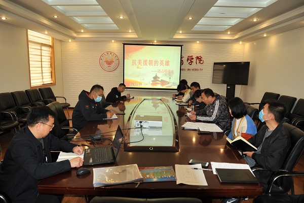 为纪念中国人民志愿军抗美援朝出国作战70周年,学习弘扬革命先烈精神,学习身边先进典型,11月11日上午,校区教师支部召开“纪念中国人民志愿军抗美援朝作战70周年”主题党日活动,有幸邀请到抗美援朝老兵路占根的儿子路海明与校区教师党员分享他父亲路占根老战士在抗美援朝的英雄事迹。