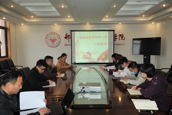 3月10日,登封校区教师支部组织全体教师党员学党史,校区党总支书记郜攀峰以“读懂百年党史,汲取智慧力量”为主题给全体教师党员讲党课。