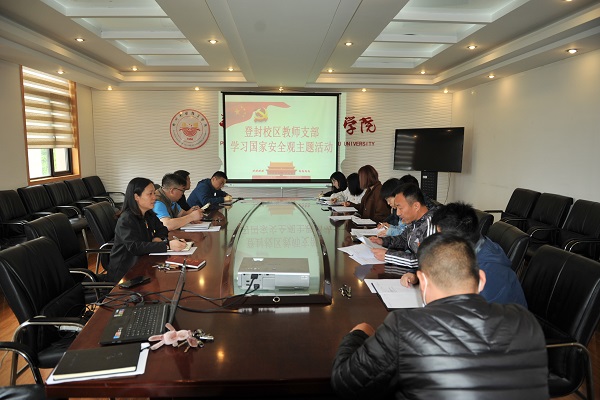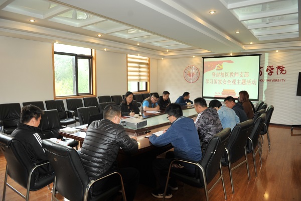 登封校区教师党支部根据学院党委2021年组织工作要点,2021年4月21日在办公楼三楼会议室以“践行总体国家安全观,统筹发展和安全,统筹传统安全和非传统安全,营造庆祝建党100周年良好氛围”为主题开展集体学习。校区全体教师党员参加了此次活动。