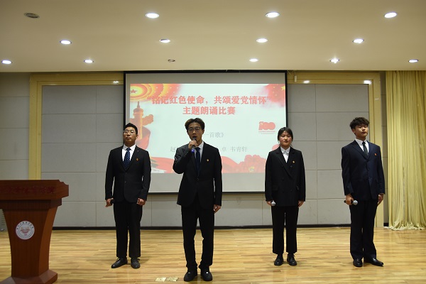 晚上18点30分,活动在雄壮的国歌声中拉开帷幕。11组参赛选手依次登台,分别朗诵了《永远跟党走》、《党旗颂》、《党啊,我的母亲》等11篇红色作品。参赛选手用慷慨激昂的朗诵,满怀深情的回顾了党的光辉历程,抒发了对党、对国家的热爱和赞美,诉说了对党的崇高敬意。