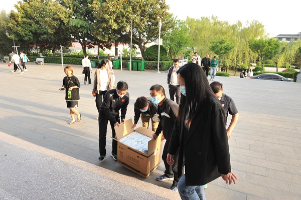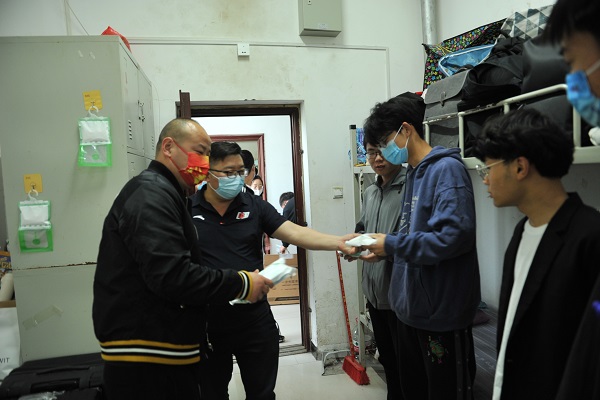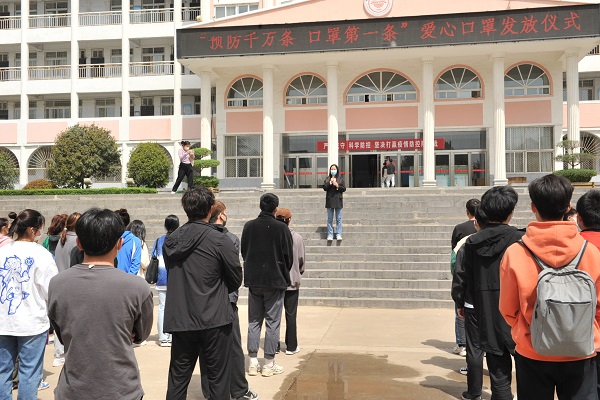 按照疫情防控要求,4月13日中午校区在升旗广场为学生各宿舍的代表发放口罩,登封校区党总支书记郜攀峰亲切问候了同学们校园生活近况,同时期望同学们在这特殊时期能够按照疫情防控要求规范自身行为,科学佩戴口罩,共同守护校园师生平安健康。下午18:30,校区党总支、教师支部深入学生宿舍,为同学们发放口罩,亲切询问同学们因疫情封校期间学习生活中出现的困惑,了解关注学生身心健康。