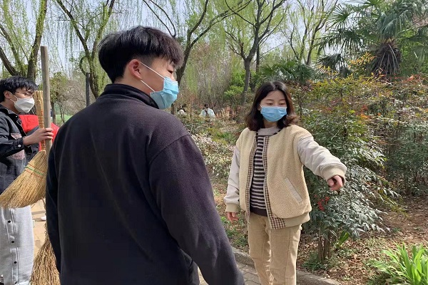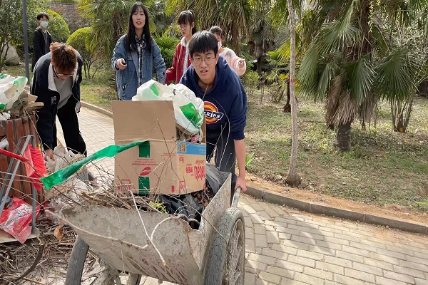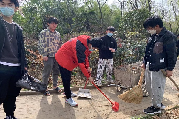 2022年3月27日下午,为了进一步弘扬志愿者精神、构建文明和谐的校园环境,郑州大学体育学院登封校区英语、公管、新闻专业开展了清洁校园活动。在辅导员李雪老师的带领下同学们在学校后山小树林里捡垃圾、拾树枝、为小花小草浇水,美化校园环境