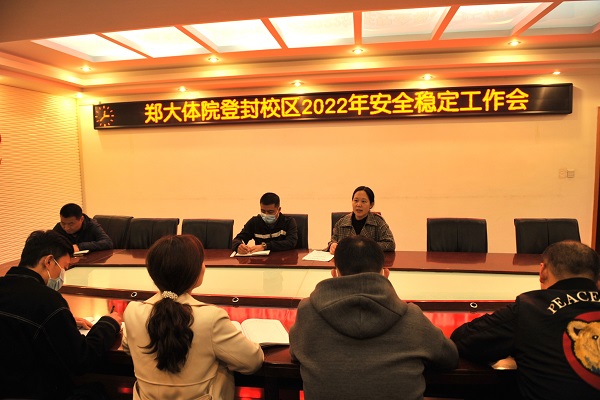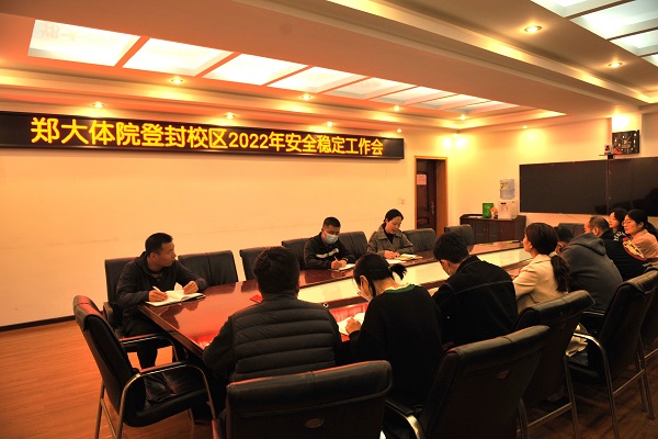 4月28日下午,登封校区在办公楼三楼第一会议室召开了校区2022年安全稳定工作会,校区领导郜攀峰、朱晓东及教职工参加会议,会议由校区党总支书记郜攀峰主持。