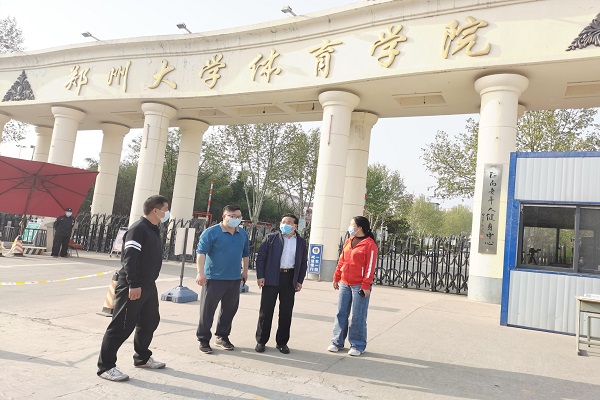 4月7日下午5点,登封市教体局党组书记李智鑫率领局办公室、体艺卫科负责同志到校区检查防疫工作。校区党总支书记郜攀峰,校区主任李远伟,校区副书记兼副主任朱晓东陪同检查。