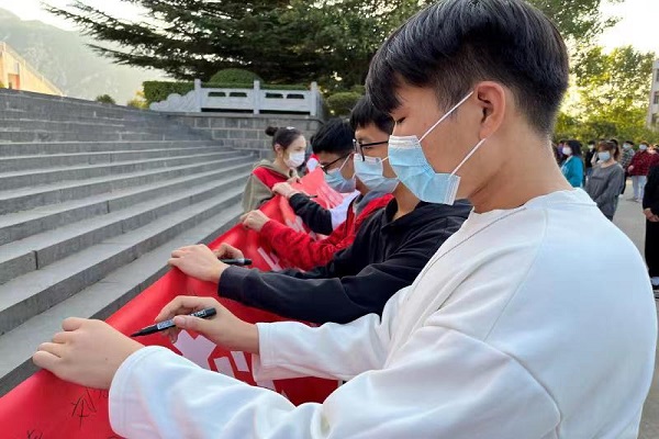 活动伊始,郜书记发表动员讲话她在讲话中明确了校园文明礼仪规范、文明礼仪对大学生综合素质的提升和重要意义引导学生从自身做起,从小事做起,践行文明礼仪,自觉规范校内外行为共建文明校园随后,学生代表22英语1班的张继月同学宣读倡议书,并带领全体师生进行“文明礼仪践行、从我做起”誓师宣誓。最后,参会领导、教师及学生代表郑重地在“讲文明 争做表率 树新风 从我做起”宣传横幅上签名留念。