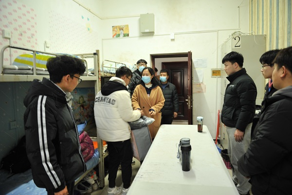 为进一步落实高校对家庭经济困难学生的资助政策,帮助学生顺利完成学业,切实帮助家庭经济困难学生解决实际问题,2月17日,校区领导郜攀峰、李远伟、朱晓东带领全体辅导员老师深入学生宿舍,慰问困难生,并为其发放实物资助。校区领导亲切与学生交谈,仔细询问了学生学习、生活情况,并鼓励同学们坚定信念、自信自强、刻苦学习,不断用知识充实自己,早日成为国家栋梁之才。