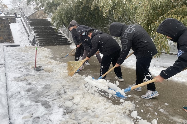 为了保障校园出行安全,2023年12月11日郑州大学体育学院登封校区开展了“银装素裹兆丰年 扫雪除冰暖人心”校园扫雪活动,各班积极组织同学们有秩序、有安排地进行暖心活动。