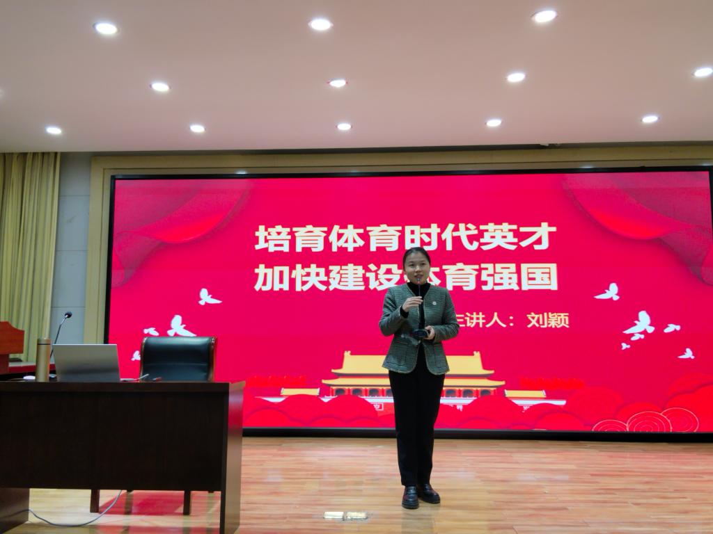 刘颖老师以“培育体育时代英才,加快建设体育强国”为主题,以“何为复兴?”问题为导入,将我国近代史与体育的发展史串成线,旁征博引、深入浅出地对中国的复兴史、中国从体育弱国到体育强国的历史飞跃展开论述。在讲座的最后,刘老师指出:大学生作为新时代青年应当具有无私奉献、遵纪守法、团结协作、顽强拼搏的体育精神,在党和人民最需要的时刻冲得出来、顶得上去!