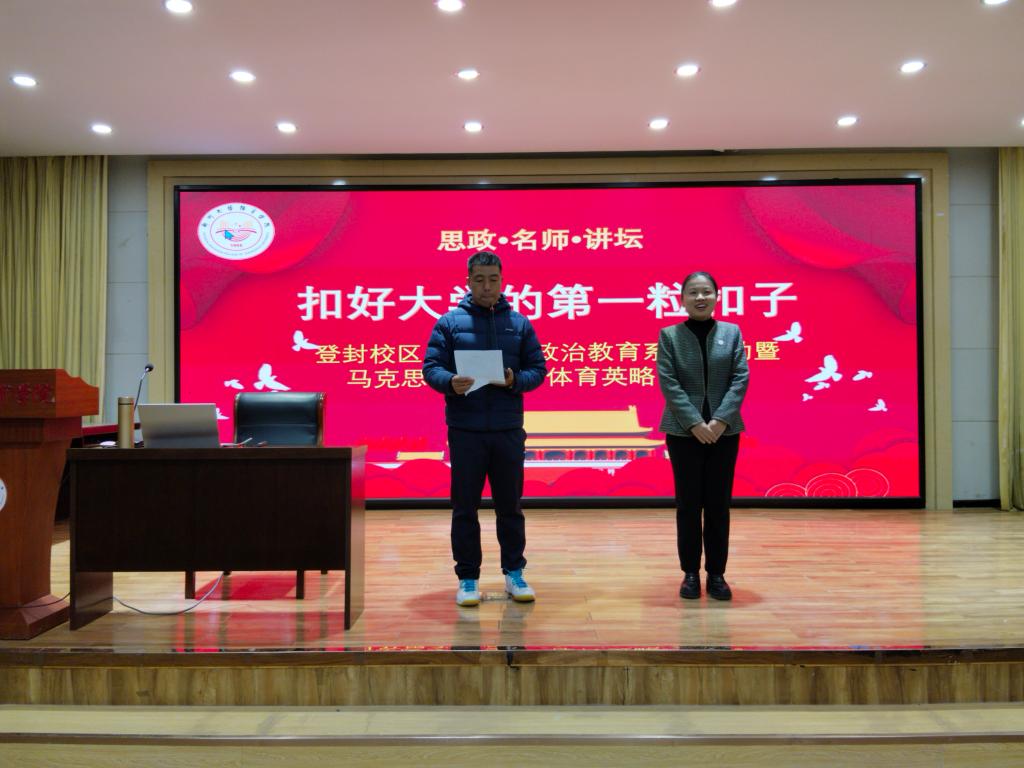为进一步深化大一新生的思想政治教育,弘扬社会主义核心价值观,2023年11月23日,登封校区学生管理思政品牌“思政·名师·讲坛”大讲堂第五讲开讲了。校区邀请到我院马克思主义学院副院长、副教授、法学博士刘颖老师为校区师生做讲座。本次讲座由登封校区党总支副书记、副主任朱晓东主持,校区近300名学生参加此次讲座。