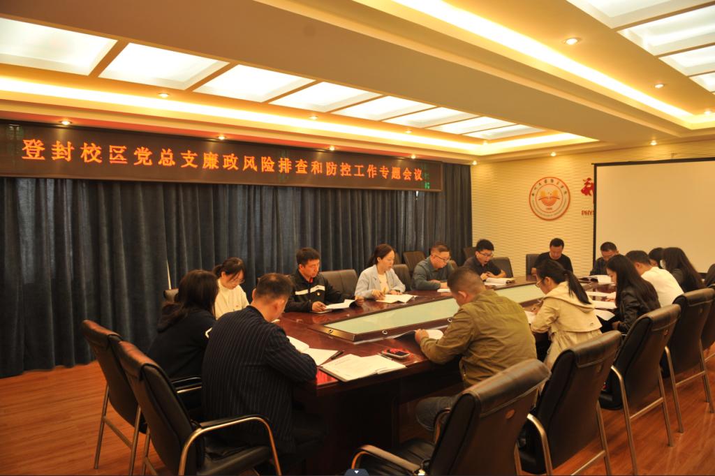 2023年10月10日,登封校区党总支在办公楼三楼第一会议室召开廉政风险排查和防控工作专题会议,校区全体党员参加会议,会议由校区党总支书记郜攀峰主持。