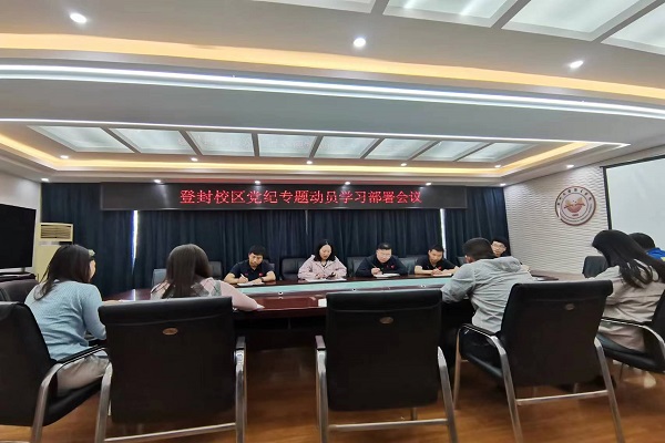 4月25日,登封校区党总支召开党纪学习教育动员部署会,传达学习习近平总书记关于党纪学习教育的重要讲话和重要指示精神,按照学院党委党纪学习教育部署要求,安排部署校区党纪学习教育工作。