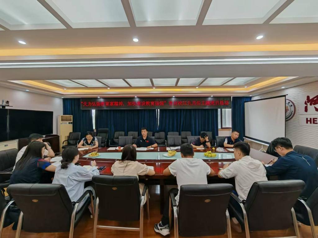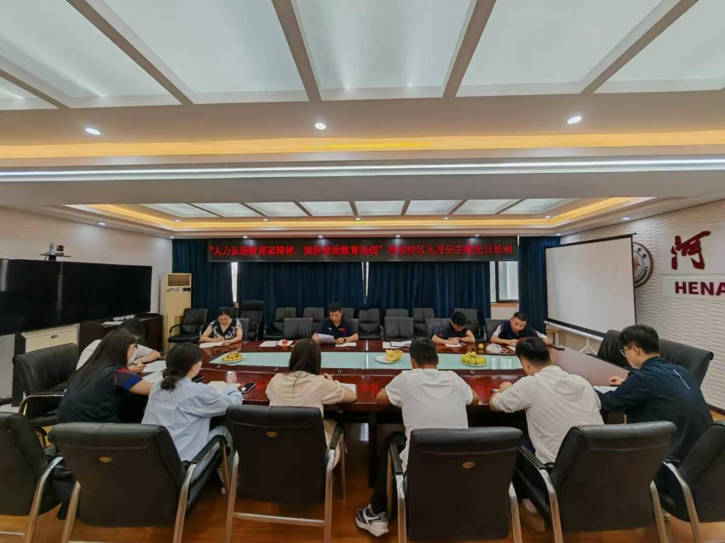 为了勉励校区教职工以教育家精神引领新时代教师队伍建设,9月10日,登封校区举办“大力弘扬教育家精神 加快建设教育强国”主题党日活动。校区党总支书记朱晓东、校区主任李远伟、各部门负责人以及全体辅导员老师参加了本次活动。