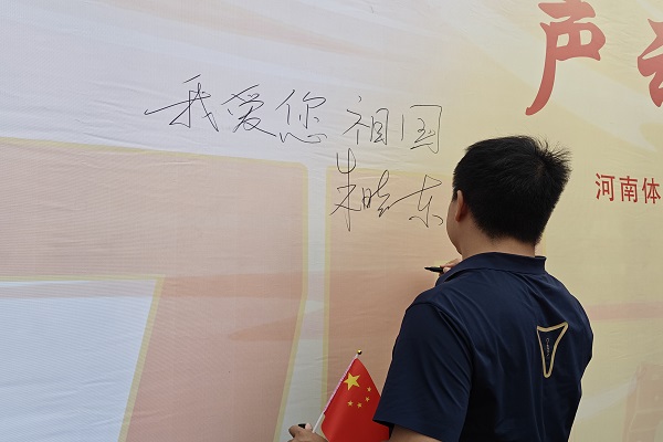 本次活动中,还特别设置了“祖国我想对您说”签字活动。大家纷纷拿起笔,在签名墙上签下对祖国的祝福和自己的名字,表达对祖国的美好祝愿。