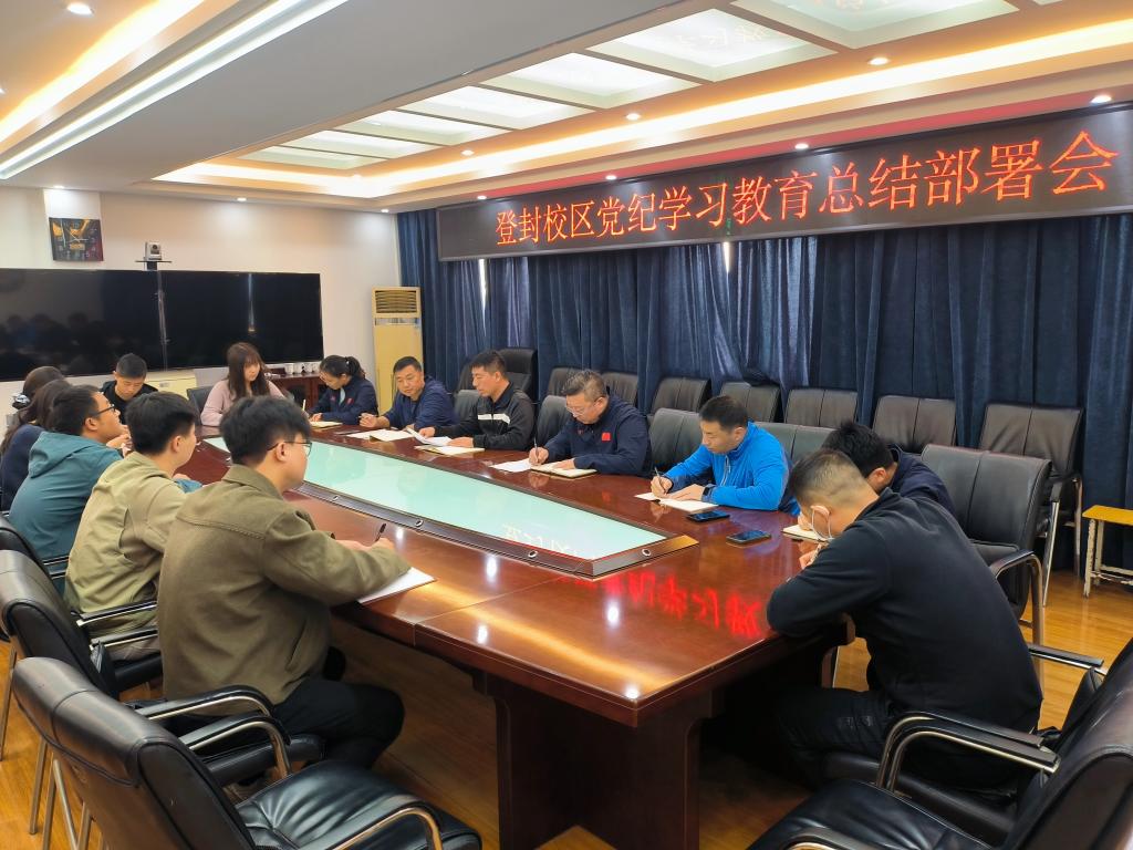 为了更好地总结校区党纪学习教育情况,研究部署推进党纪学习教育常态化长效化工作,10月14日,登封校区召开党纪学习教育总结部署会议。校区党总支书记朱晓东、校区主任李远伟、各部门负责人以及全体辅导员老师参加了本次会议,会议由办公室负责人董小儒主持。