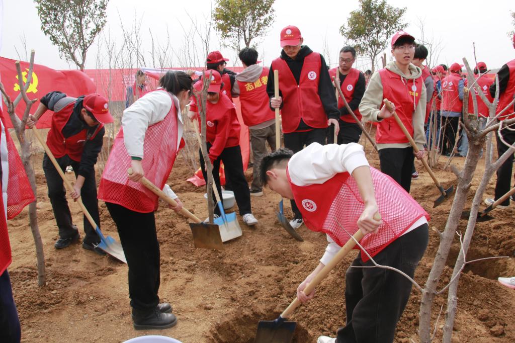 3月12日下午,校区教师支部和学生支部全体党员以及学生积极分子们前往登封市陈家门村郑州市全民义务植树基地开展义务植树活动。活动现场,师生四人一组,分工合作,挥锹培土、扶树浇水,干劲十足,种下一棵棵新苗,呈现出一片热火朝天的劳动景象。在植树过程中,大家积极交流生态保护知识,共同探讨如何更好地推动绿色发展,现场氛围十分热烈。