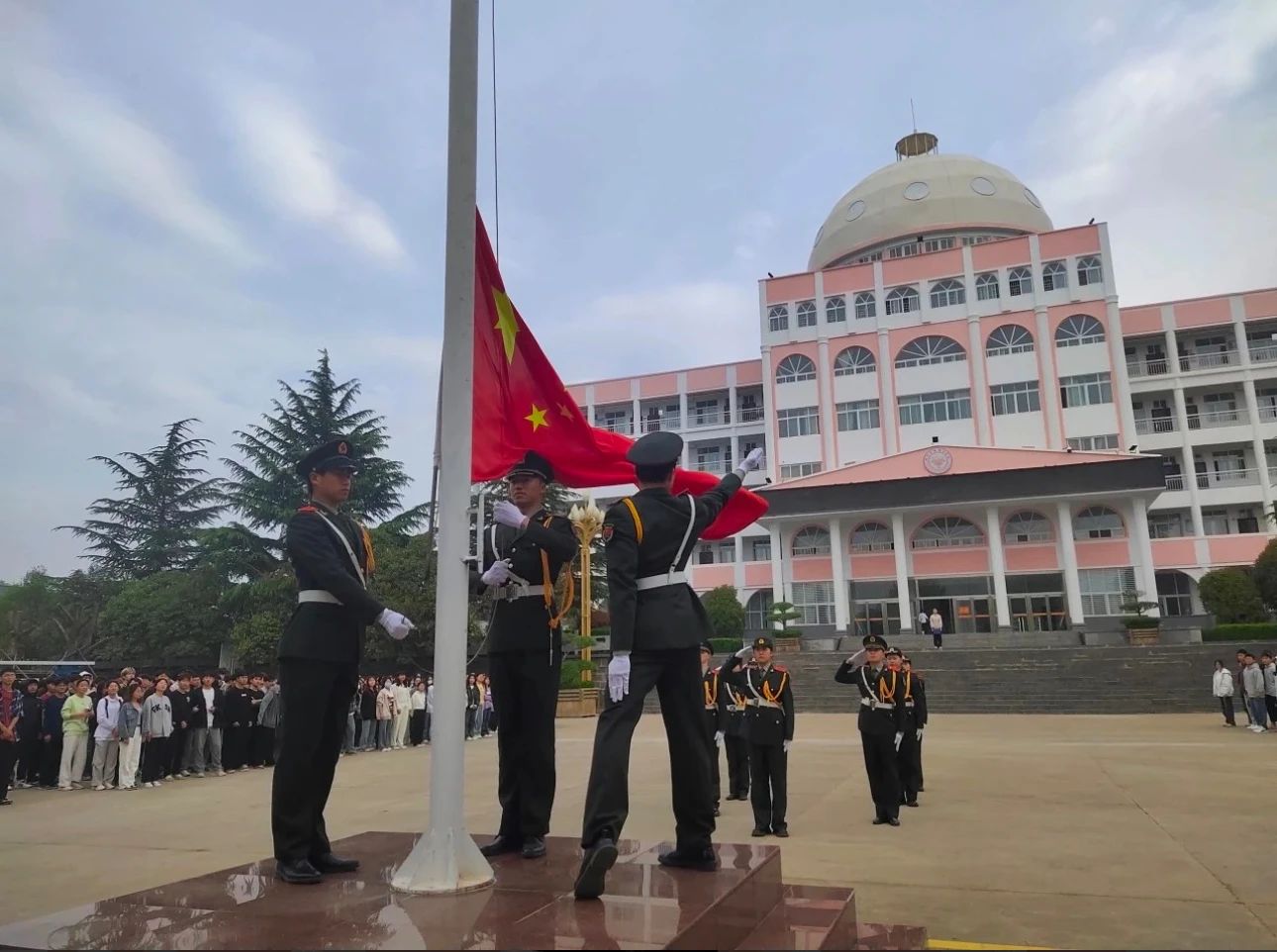 升旗仪式是学校对学生进行爱国主义教育的重要形式,是培养德育,建立集体荣誉感的重要活动。4月15日,郑州大学体育学院登封校区全体师生齐聚升旗广场,隆重举行本学期第八周升旗仪式。学生代表 公管一班石懿岩发表以《关注国家安全 迎谷雨节气》为题的国旗下的演讲,告诉同学们国家安全教育日和谷雨节气的到来,既是对我们的提醒,也是对我们的激励。让我们牢记国家安全,努力学习,增强国家安全意识;让我们传承中华优秀传统文化,弘扬民族精神,为实现中国梦而努力奋斗。最后,祝愿我们的祖国繁荣昌盛,国家安全稳定,人民幸福安康!
